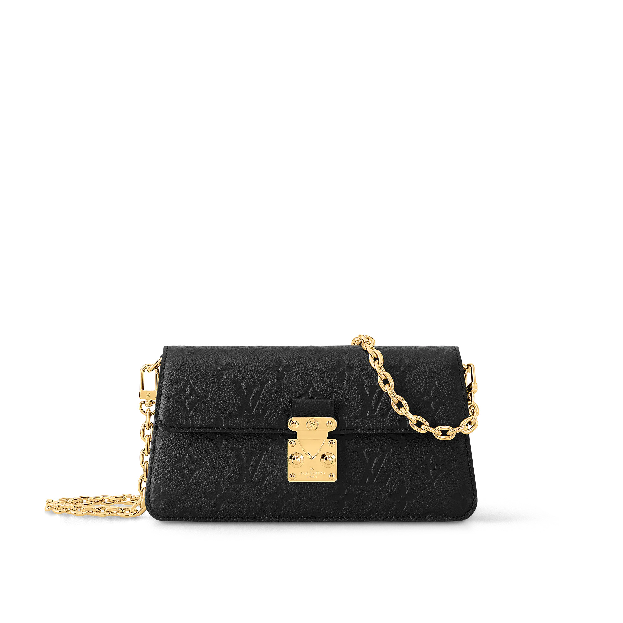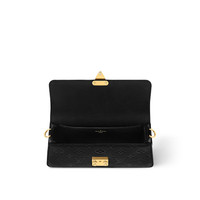 The Metis wallet on chain is crafted from grained Monogram Empreinte leather, which is embossed with Louis Vuitton's signature Monogram pattern. This stylish bag has a trapezoidal shape and a front flap which is secured with an S-lock clasp, referencing the House's historic trunks. It features a removable chain for cross-body wear. Length: 7.5 inches Height: 4.3 inches Width: 2.2 inches - Black - Monogram Empreinte embossed supple grained cowhide leather - Textile lining - Gold-color hardware - S-lock closure - Inside flat pocket - Chain:Removable This reference is either Made in France, Spain, Italy or in the US.