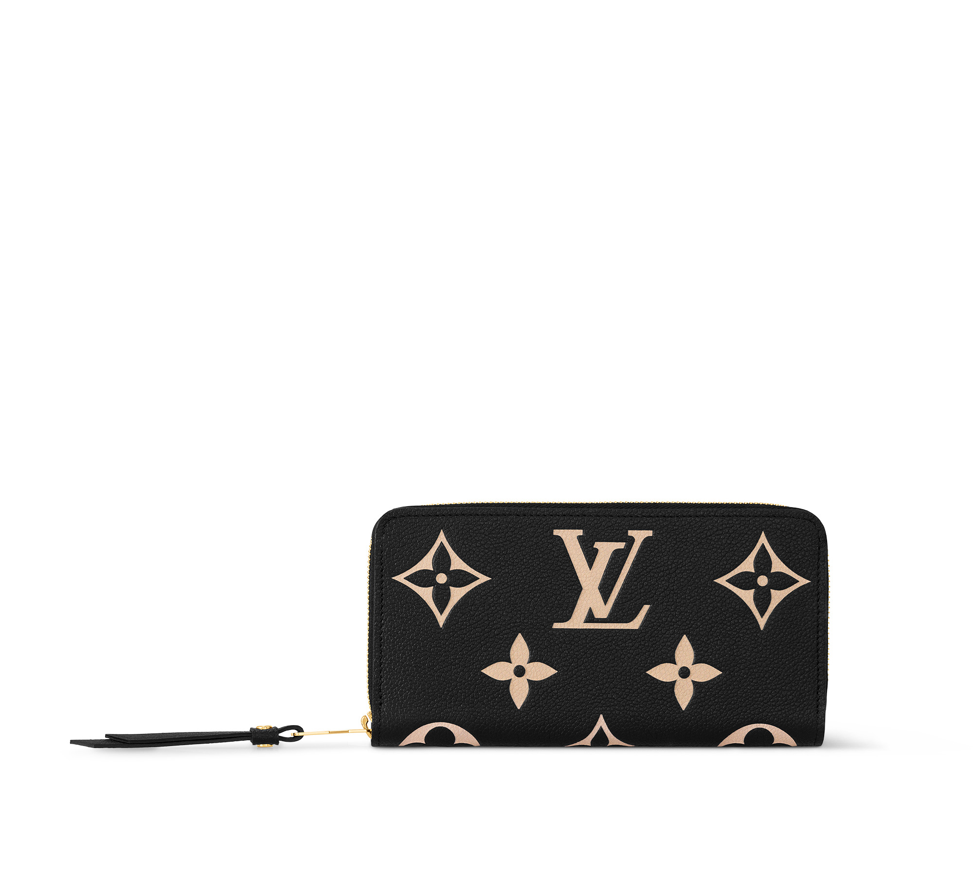 The Zippy Wallet is made from two-tone Monogram Empreinte leather, with the Monogram pattern both embossed and printed on the cowhide leather. The Zippy is an iconic House wallet known for its secure, zip-around closure and an array of inside pockets, compartments and card slots. Detailed Features - Black / Beige - Monogram Empreinte embossed supple grained cowhide leather - Cowhide-leather lining - Gold-color hardware - Zip closure - 3 large gusseted compartments - Banknote pocket - Zipped coin pocket - 2 inside flat pockets - 12 card slots - This reference is either made in France, Spain, Italy or in the US. Length: 7.7 inches Height: 4.1 inches Width: 1 inches