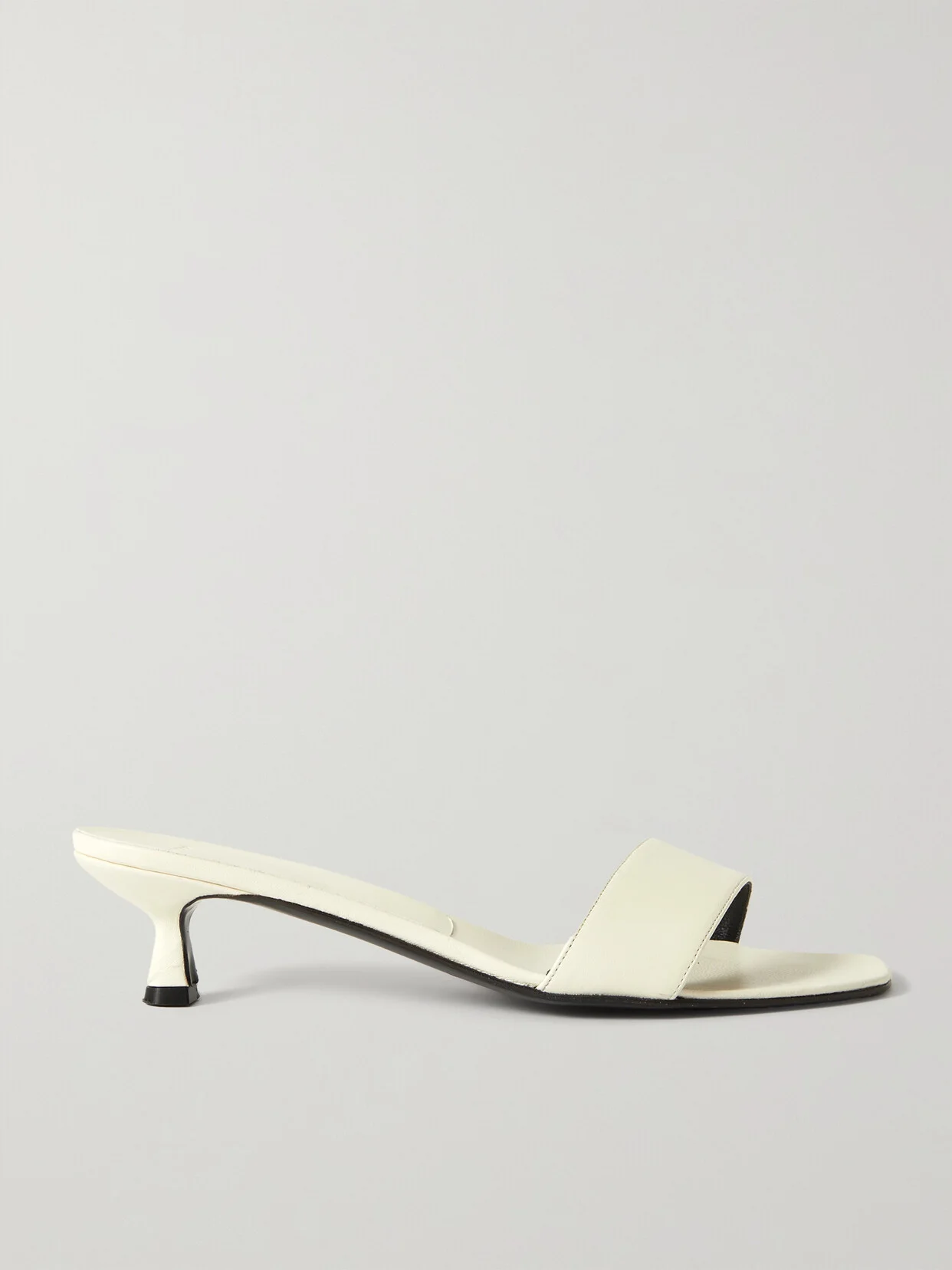 LOULOU STUDIO's 'Elys' mules echo minimal styles from the '90s. Crafted from ivory leather, they have wide straps and rest on low kitten heels. Complement the open-toe design with a fresh pedicure. This product was created using Considered Processes. Find out more about NET SUSTAIN here.
