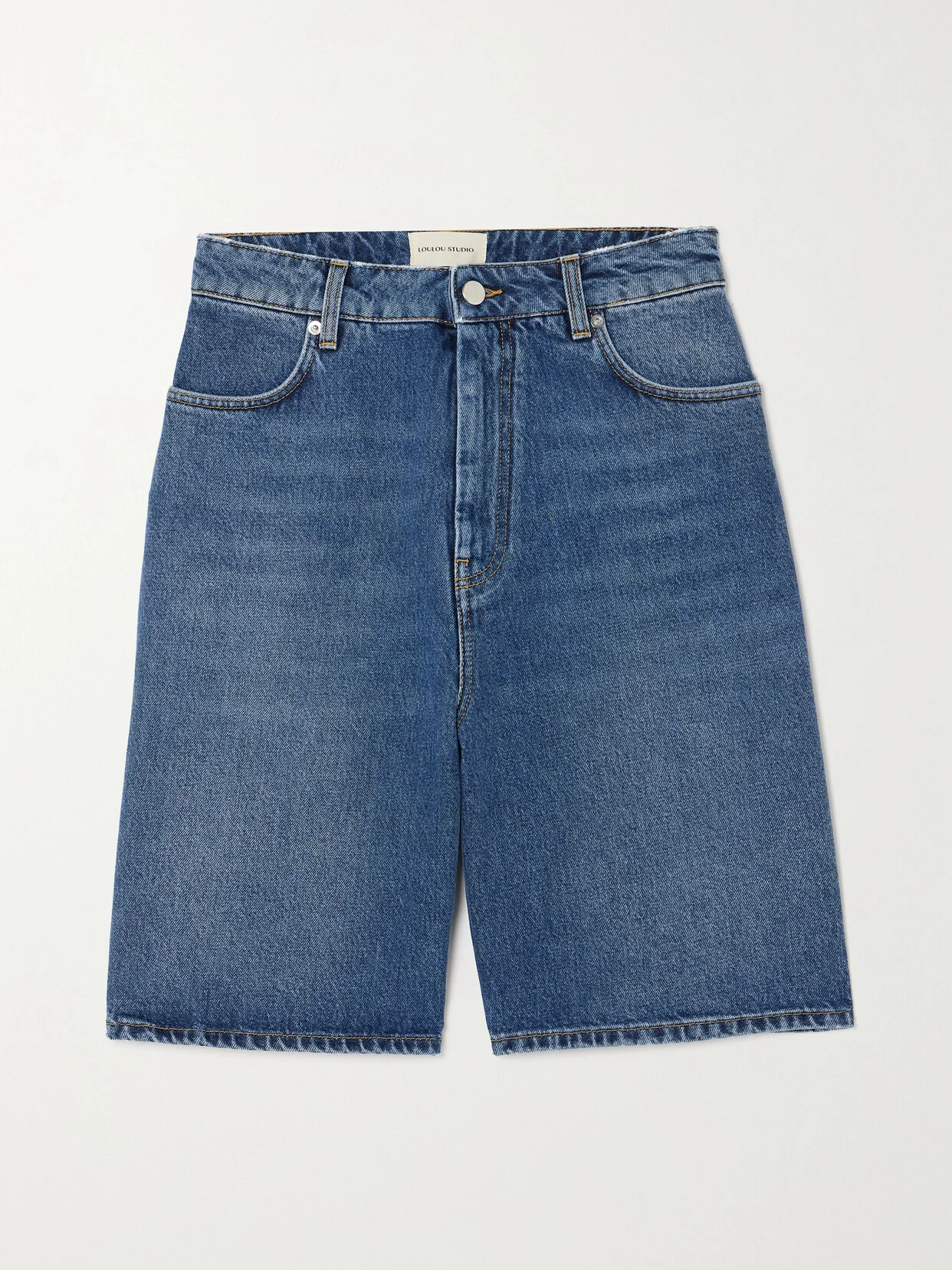 LOULOU STUDIO's minimalist designs are all about balance - the brand describes its style as "feminine with a masculine touch." These shorts are cut from organic denim with a high-rise waist and loose, straight legs that fall just above the knees. The shape works particularly well with strappy heels. This product was created using Considered Materials. Find out more about NET SUSTAIN here.