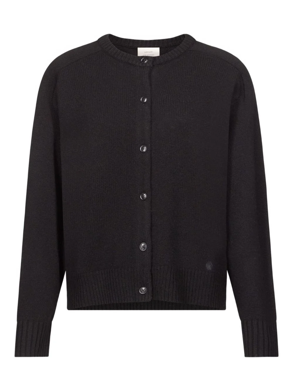 Aidar Lds ribbed crew-neck cardigan Highlights - Black - Wool-cashmere blend - Crew neck - Button fastening - Ribbed cuffs and hem Imported Composition Wool 90%, Cashmere 10% Washing instructions Read Manufacturer Guidelines