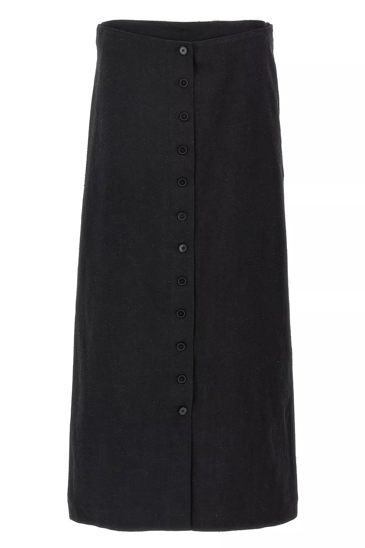 cod. ATRIBLACK 'Atri' cotton blend skirt, front panel with buttons, side zip closure. Color: Black Size & Fit: True to size fit Composition: 55% cotton 26% viscose 12% linen 7% silk Made in: Romania