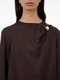 Azae draped top Highlights - Brown - Silk twill - Draped neckline - Metallic ornament - Crew neck - Flared sleeves Imported Composition Silk 100% Washing instructions Read Manufacturer Guidelines