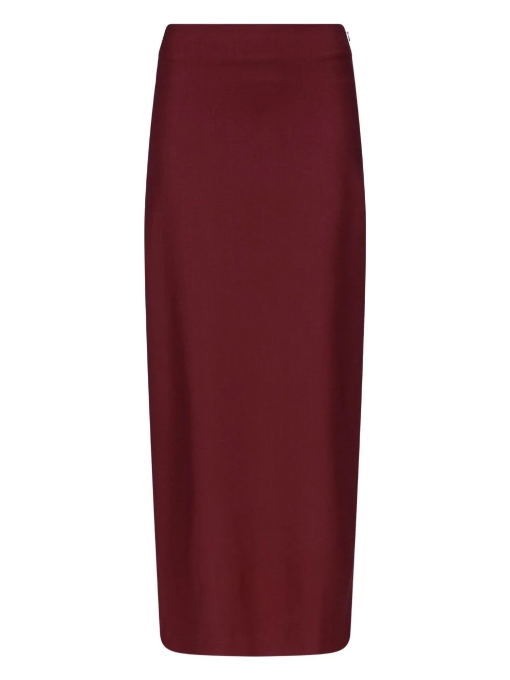 back-vent long straight skirt Highlights - Burgundy - Back vent - Maxi length Imported Composition Virgin Wool 95%, Elastane 5% Washing instructions Hand Wash