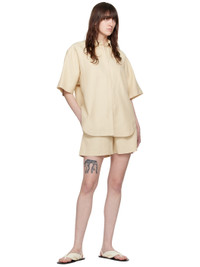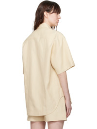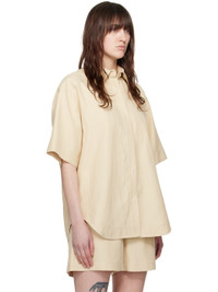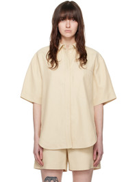 OEKO-TEX®-certified viscose- and linen-blend twill shirt. · Spread collar · Concealed button closure · Welt pocket · Droptail hem · Dropped shoulders Supplier color: Sand 85% viscose, 15% linen. Made in Romania 241473F109005