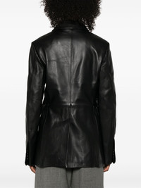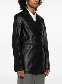 Benetra blazer Highlights - Black - Lambskin - Double-breasted button fastening - Notched lapels - Shoulder pads - Long sleeves - Button fastening - Chest welt pocket - Two front flap pockets - American rear vent - Cotton lining - Straight hem Imported Composition Lining: Viscose 100%, Cotton 100% Outer: Lambskin 100% SIZE & FIT Model measurements Height 5 ft 11 in(1.8 m) Bust/Chest 31.49 in(80 cm) Hips 35.82 in(91 cm) Waist 24.8 in(63 cm) FittingInformation Designed for a slim fit that sits just away from the body offering a close yet comfortable fit The internal shoulder pads offer a structured shape Soft leather has a supple and smooth construction offering some flexibility