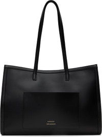Buffed calfskin tote. · Twin shoulder straps · Patch pocket and logo stamp at face · Magnetic closure · Zip pocket at interior · Twill lining · H11" x W16" x D7.5" Supplier color: Black Calfskin. Made in Italy 252473F049000