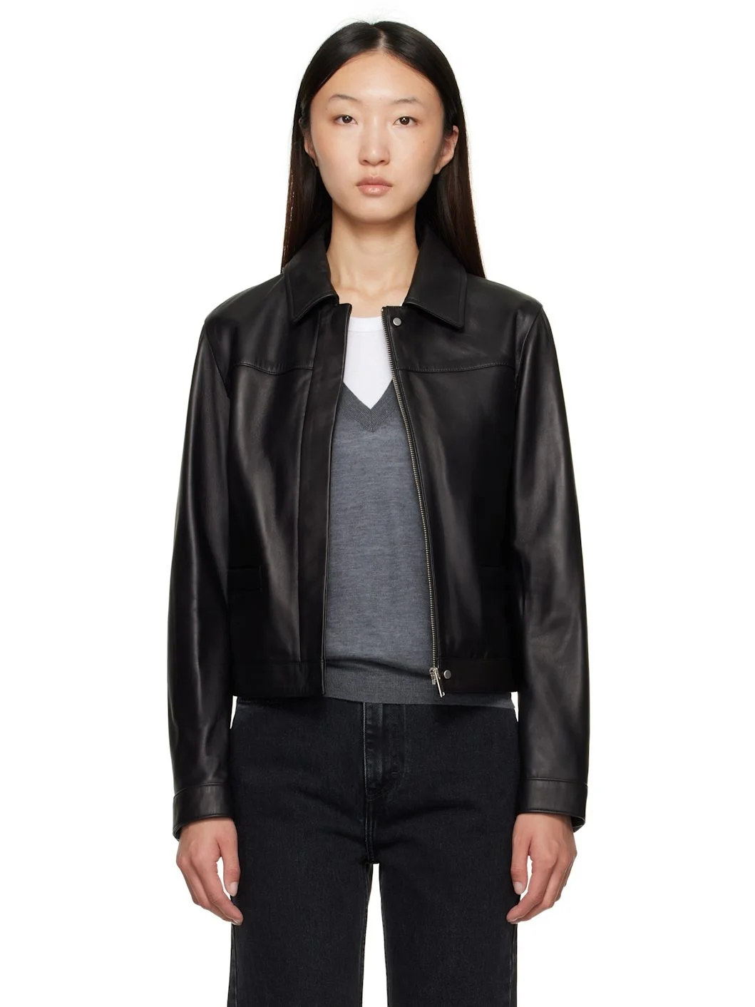 Buffed lambskin jacket. · LWG-certified · Spread collar · Concealed zip closure with press-stud placket · Welt pockets at waist · Press-stud barrel cuffs · Welt pocket at interior · Viscose twill lining Supplier color: Black Body: 100% lambskin. Lining: 100% viscose. Made in Turkey 252473F064004