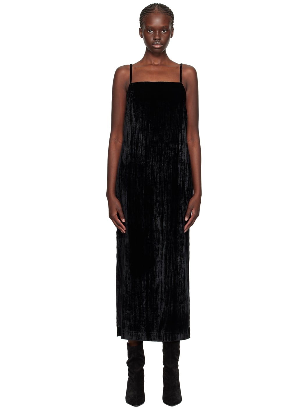 Viscose- and nylon-blend crushed velvet dress. · Square neck · Darts at chest · Concealed zip closure at side · Vented side seams · Fixed spaghetti straps · Full plain-woven cotton lining Supplier color: Black
