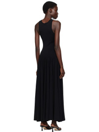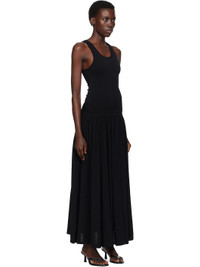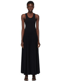 Stretch knit viscose-blend maxi dress. · Certified OEKO-TEX® Standard 100 · Semi-sheer · Scoop neck · Gathering at dropped waist · Fixed shoulder straps Supplier color: Black 61% viscose, 38% polyester, 1% elastane. Made in Italy 252473F055002