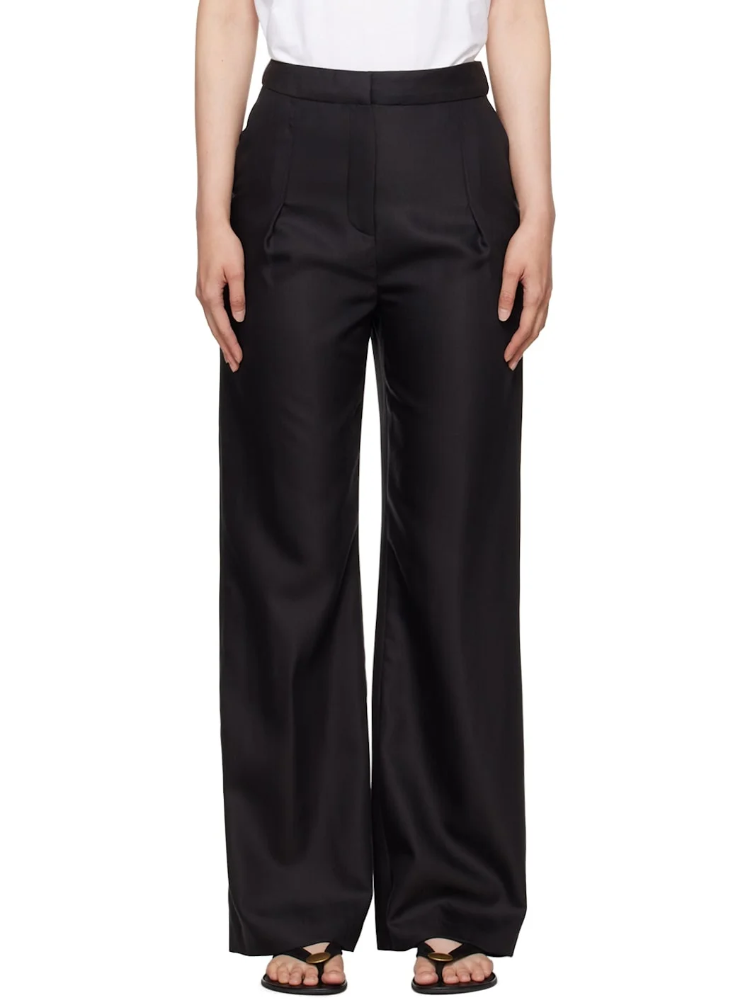 OEKO-TEX®- certified viscose- and wool-blend twill trousers. · Three-pocket styling · Zip-fly · Pleats at front · Darts at back Supplier color: Black 50% viscose, 35% wool, 15% mohair. Made in Romania 242473F087002