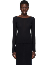 Rib-knit cotton- and nylon-blend T-shirt. Lettuce edges throughout. · Semi-sheer · Certified OEKO-TEX® Standard 100 · Boatneck Supplier color: Black 87% cotton, 13% nylon. Made in Italy 252473F110002