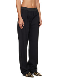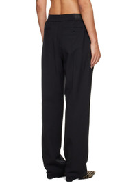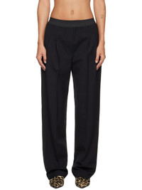 Stretch virgin wool grain de poudre trousers. · OEKO-TEX® STANDARD 100-certified · Straight-leg · Elasticized waistband · Four-pocket styling · Pleats at front · Creased legs Supplier color: Black Body: 95% virgin wool, 5% elastane. Trim: 100% viscose. Made in Romania 252473F087003