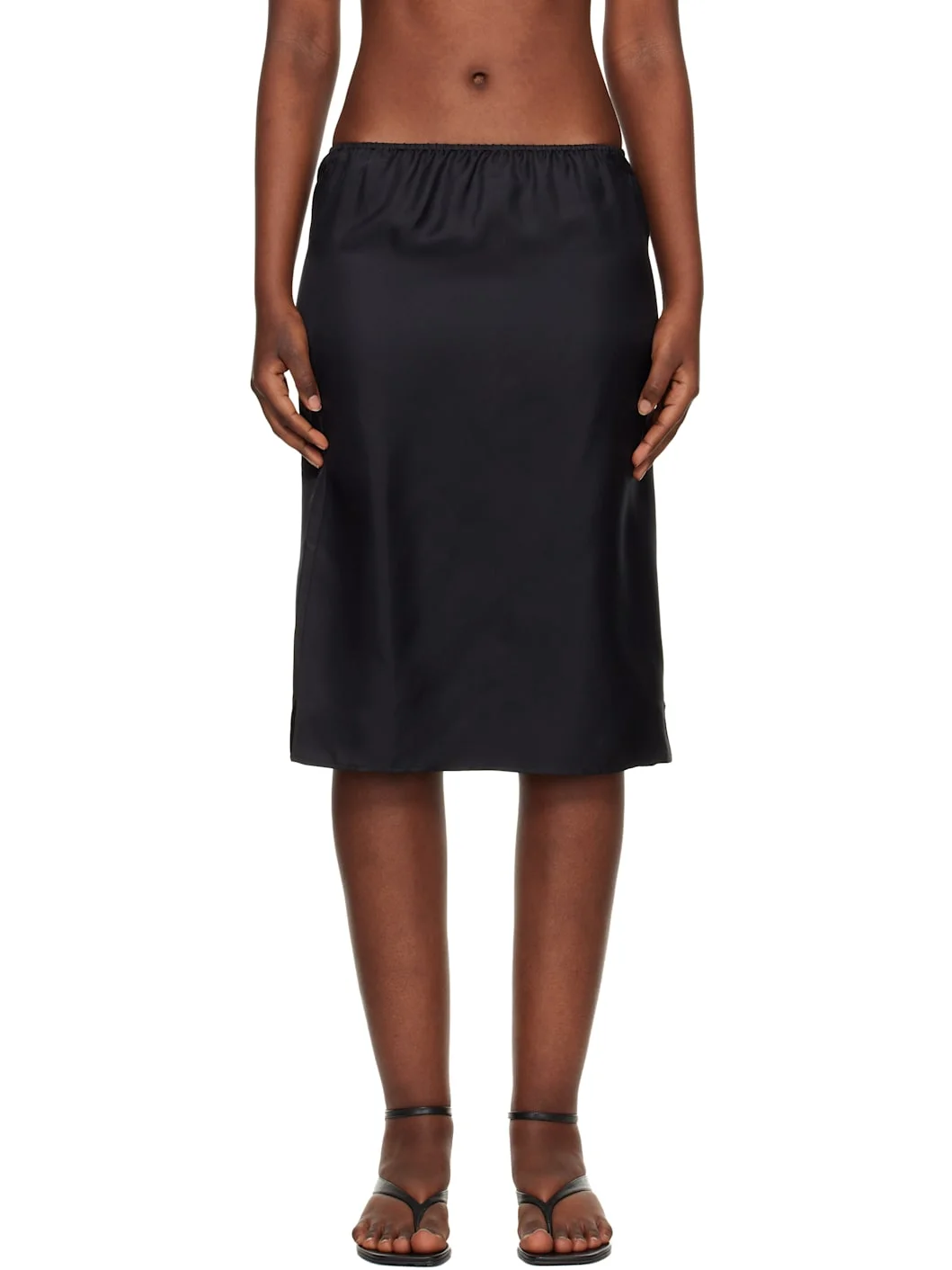 Silk twill midi skirt. · Certified OEKO-TEX® Standard 100 · Elasticized waistband · Vented side seam Supplier color: Black 100% silk. Made in Italy 261473F092001