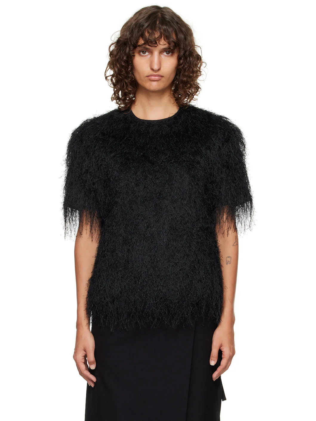 Shag-knit T-shirt. · OEKO-TEX® STANDARD 100-certified · Crewneck · Full cotton poplin lining Supplier color: Black Body: 100% polyester. Lining: 100% cotton. Made in Italy 252473F110011