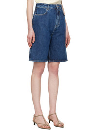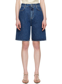 Non-stretch organic cotton denim shorts. Fading and subtle distressing throughout. · Belt loops · Four-pocket styling · Zip fly · Leather logo patch at back waistband · Silver-tone hardware · Contrast stitching in tan Supplier color: Washed blue 100% organic cotton. Made in Italy 251473F088008