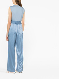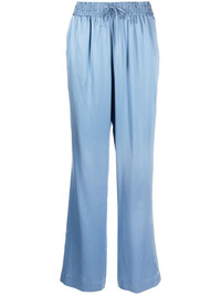 high-waisted silk pants cornflower blue silk satin finish high-waisted slight flare elasticated drawstring waistband rear patch pocket Imported Composition Silk 100% SIZE & FIT Model measurements Height 5 ft 10 in(1.77 m) Bust/Chest 32.28 in(82 cm) Hips 34.64 in(88 cm) Waist 24.4 in(62 cm) FittingInformation Designed with a wide-leg cut, these trousers allow for a close fit at the waist and offer a loose and roomy fit over the leg The elasticated waist allows for a comfortable fit Made from a midweight non-stretch fabric This piece fits true to size – take your usual size