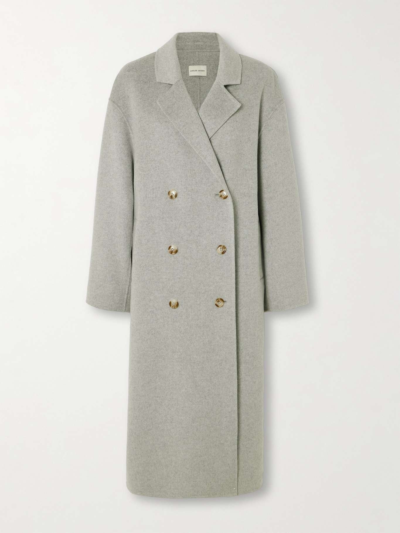 EDITORS'NOTES Chloe Harrouche created LOULOU STUDIO with the intention of making getting dressed in the morning easier. An effortless coat to slip on over so many different outfits, this 'Borneo' style is made using certified processes from gray wool and cashmere-blend. The double-breasted silhouette is cut for a boxy fit, so you can easily layer chunkier knits and shirts underneath. Lower-Impact Materials. This product is made using at least 50% lower-impact materials or ingredients. Find out more about our NET SUSTAIN criteria here. SIZE & FIT - Fits true to size, take your normal size - Designed for a loose fit and is sized for layering - Mid-weight, non-stretchy fabric - Model is 177cm/ 5'10" and is wearing a size Small DETAILS & CARE - Gray wool and cashmere-blend - Button fastenings through double-breasted front - 90% wool, 10% cashmere - Hand wash