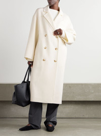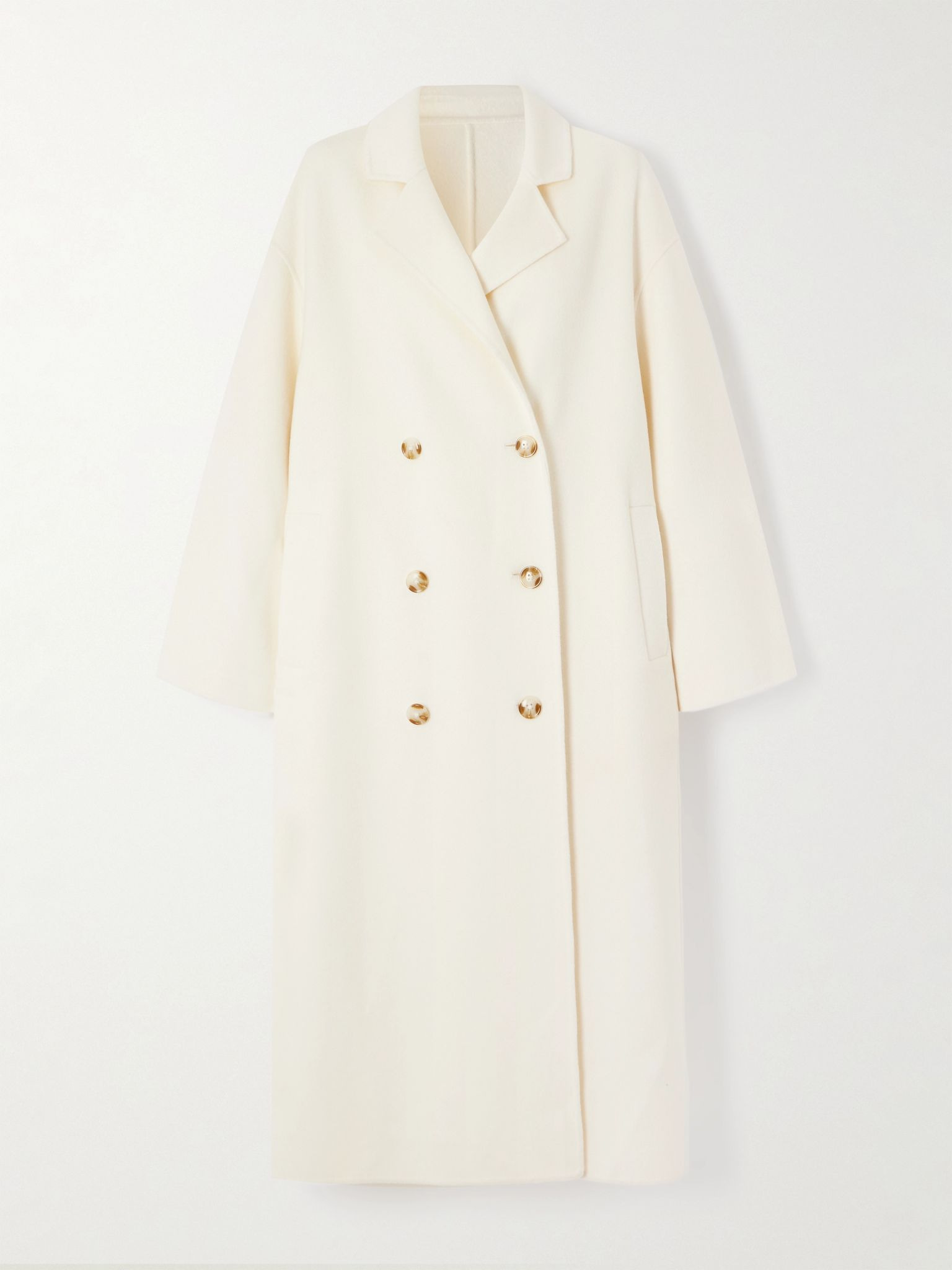 Chloe Harrouche created Loulou de Saison with the intention of making getting dressed in the morning easier. An effortless coat to slip on over so many different outfits, this 'Borneo' style is made from ivory wool and cashmere-blend and has a classic double-breasted silhouette and loose fit. Size & Fit - Intended to be oversized; we recommend sizing down if you prefer a closer fit - Dropped shoulder seam - Mid-weight, non-stretchy fabric - Model is 177cm/ 5'10" and is wearing a FR 36 Model measurements: - Bust: 80cm/ 31.5" - Waist: 60cm/ 23.5" - Hip: 89cm/ 35" Details & Care - Ivory wool and cashmere-blend - Button fastenings through double-breasted front - 90% wool, 10% cashmere - Hand wash
