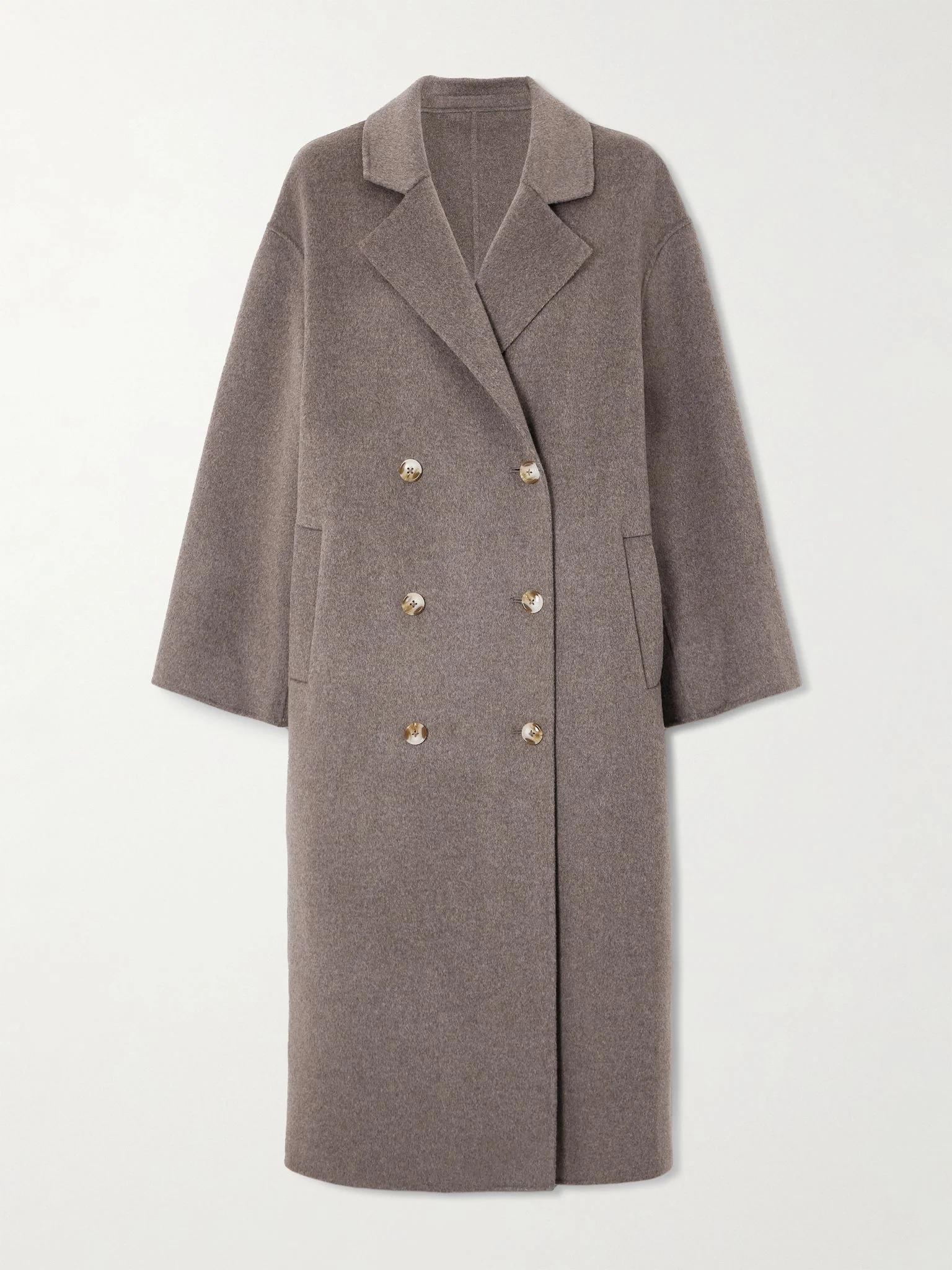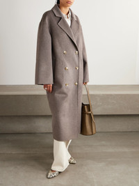 Chloe Harrouche created Loulou de Saison with the intention of making getting dressed in the morning easier. An effortless coat to slip on over so many different outfits, this 'Borneo' style is made from taupe wool and cashmere-blend. The double-breasted profile is cut for an oversized fit, so you can easily layer chunkier knits and shirts underneath. Size & Fit - Intended to be oversized; we recommend sizing down if you prefer a closer fit - Dropped shoulder seam - Mid-weight, non-stretchy fabric - Model is 177cm/ 5'10" and is wearing a FR 36 Model measurements: - Bust: 85cm/ 33.5" - Waist: 65cm/ 25.5" - Hip: 91cm/ 36" Details & Care - Taupe wool and cashmere-blend - Button fastenings through double-breasted front - 90% wool, 10% cashmere - Hand wash