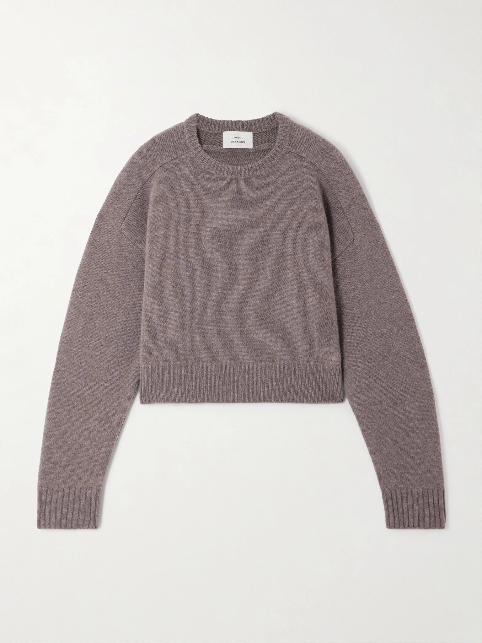 Loulou de Saison's 'Bruzzi' sweater drapes effortlessly thanks to the beautiful wool and cashmere-blend it's knitted from. It has a boxy silhouette and comfy raglan sleeves. Size & Fit - Fits true to size, take your normal size - Intended for a boxy fit, cut to be worn loose - Long in the sleeves - Cropped length - Dropped shoulder seam - Mid-weight knit - Model is 177cm/ 5'10" and is wearing a size Small Model measurements: - Bust: 80cm/ 31.5" - Waist: 60cm/ 23.5" - Hip: 89cm/ 35" Details & Care - Taupe wool and cashmere-blend - Slips on - 90% wool, 10% cashmere - Hand wash