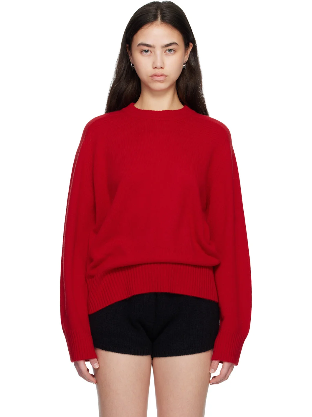 Knit cashmere sweater. · Certified OEKO-TEX® STANDARD 100 · Rib-knit crewneck, hem, and cuffs · Logo embroidered at front hem · Saddle shoulders Supplier color: Red 100% cashmere. Made in Italy 261473F096007