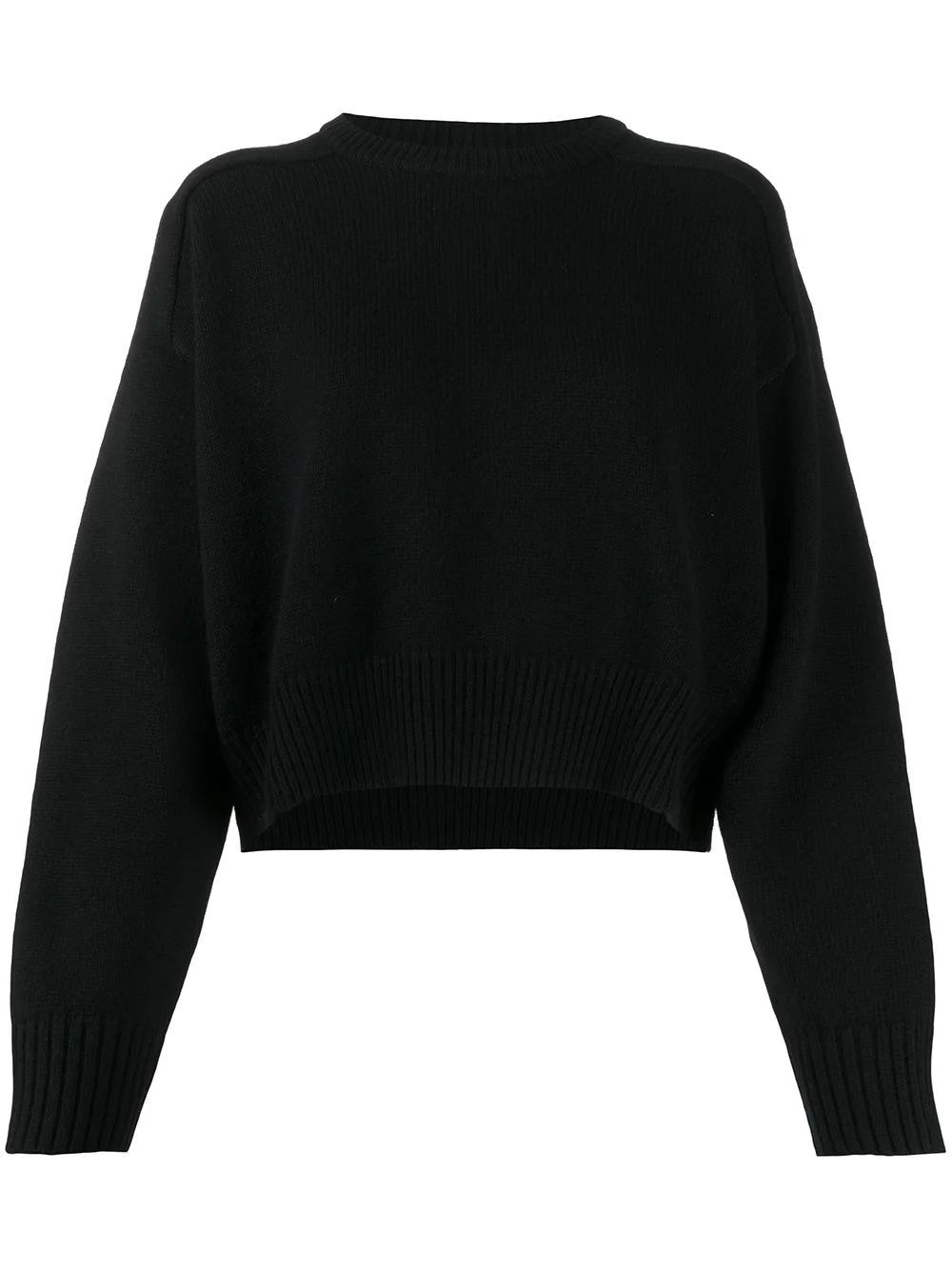 cropped knit jumper Black wool and cashmere blend cropped knit jumper from Loulou Studio featuring dropped shoulders, a round neck, long sleeves and a ribbed hem and cuffs. Imported Composition Wool 90%, Cashmere 10% SIZE & FIT Model measurements Height 5 ft 10 in(1.78 m) Bust/Chest 31.49 in(80 cm) Hips 36.22 in(92 cm) Waist 25.59 in(65 cm) Measurement SLEEVE LENGTH 19.68 in(50 cm) Shoulder Width 23.62 in(60 cm) LENGTH 17.71 in(45 cm) BUST 49.6 in(126 cm) FittingInformation This piece fits true to size. We recommend you get your regular size Cut for a relaxed fit Made with a mid-weight fabric Washing instructions Hand Wash