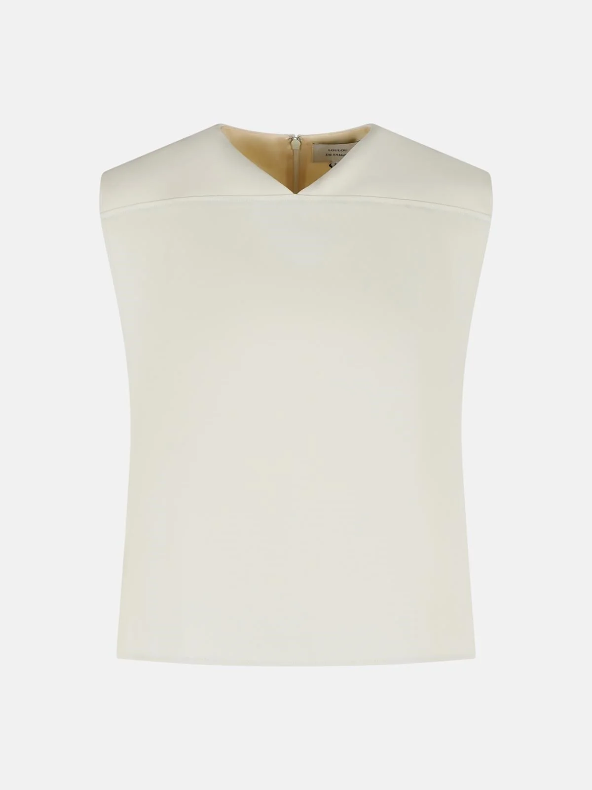 Manufacture code: DAIKA IVORY Retail code: DAIKA IVORY V-shaped unwind, sleeveless, back closure with hook and zip Main: 86% viscose, 14% wool Made in Romania