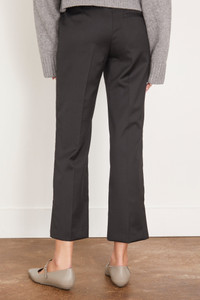 The Loulou Studio Dorkas Pant are a season-less addition to your wardrobe. These pants feature a slim, bootcut leg in virgin wool. Wear yours with a sweater and flats. FIT DESCRIPTION MODEL MEASUREMENTS - Fits true to size, take your normal size - Slim leg - Bootcut - High rise - Cropped length - 100% Virgin wool - Harriet is wearing a size XS - Bust: 32" - Waist: 24" - Hips: 30.5" - Height: 5’8.5”
