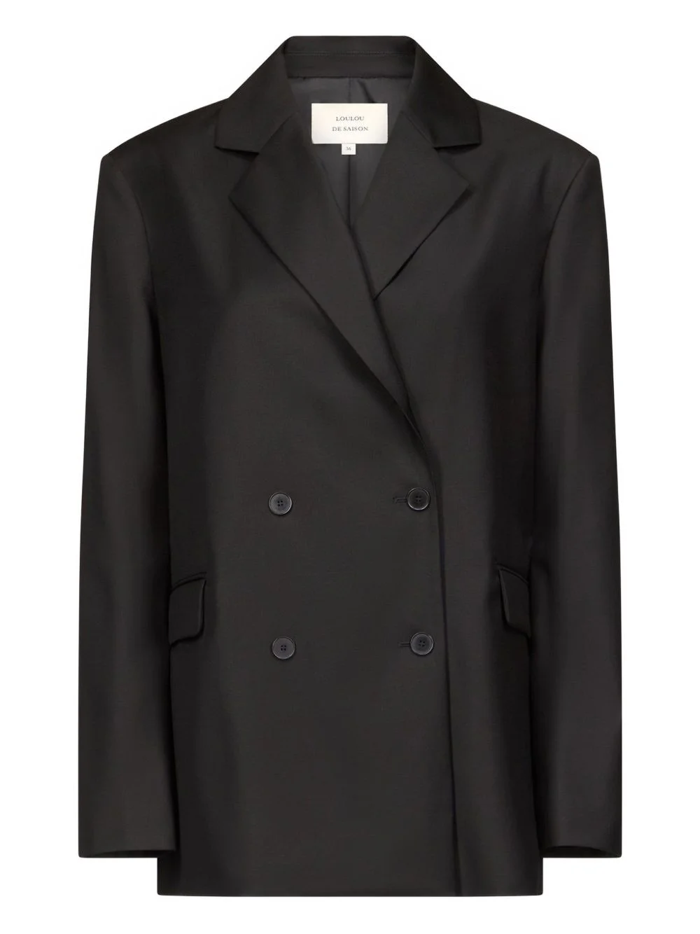 double-breasted notched lapels blazer Highlights - Black - Notched lapels - Double-breasted fastening - Flap pockets - Buttoned cuffs Imported Composition Fabric 100% Washing instructions Read Manufacturer Guidelines