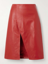 Loulou de Saison's 'Ekare' skirt is cut from buttery leather that only promises to improve with age. The high slit at the front allows for comfort and freedom to move. It'll prove to be very low maintenance, but you can turn it in to a specialist cleaner when it's due for a refresh. Lower-Impact Materials. This product is made using at least 50% lower-impact materials or ingredients. Find out more about our NET SUSTAIN criteria here. Size & Fit - Fits true to size, take your normal size - Falls below the knee, designed to be worn at the waist - Supple, slightly stretchy leather - Model is 175cm/ 5'9" and is wearing a FR 36 Model measurements: - Bust: 81cm/ 32" - Waist: 64cm/ 25" - Hip: 89cm/ 35" Details & Care - Red leather - Concealed hook and zip fastening at back - 100% leather (Lamb) - Specialist clean - Designer color: Tomato
