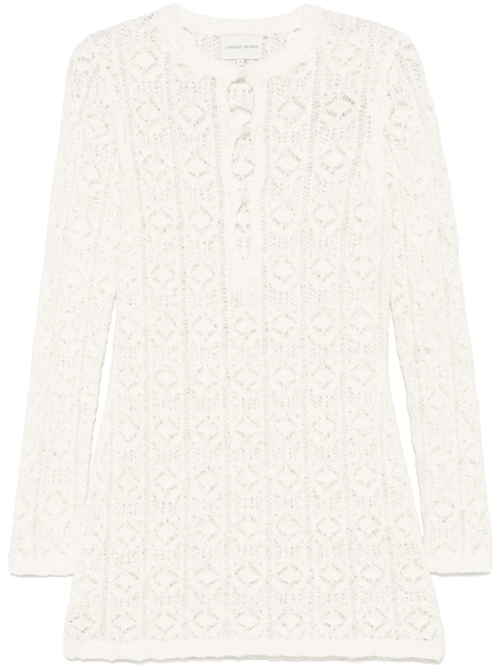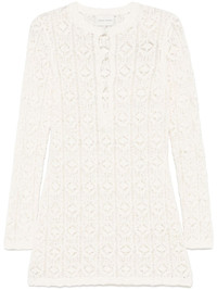 Evan lace dress Highlights - Ecru - Front button fastening - Ribbed cuffs and hem - Round neck - Semi-sheer construction Imported Composition Cotton 63%, Silk 25%, Elastane 12% SIZE & FIT Model measurements Height 5 ft 11 in(1.8 m) Bust/Chest 32.67 in(83 cm) Hips 36.22 in(92 cm) Waist 24.4 in(62 cm) FittingInformation Designed for a slim fit that sits just away from the body offering a close yet comfortable fit Made with a midweight knit, this piece offers some stretch Washing instructions Hand Wash