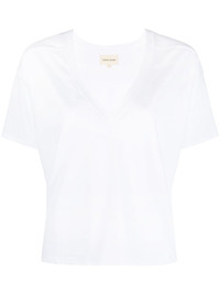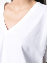 v-neck boxy T-shirt white cotton V-neck short sleeves straight hem Imported Composition Cotton 100% SIZE & FIT Model measurements Height 5 ft 10 in(1.78 m) Bust/Chest 33.07 in(84 cm) Hips 35.82 in(91 cm) Waist 25.98 in(66 cm) FittingInformation This piece fits true to size. We recommend you get your regular size Cut for a loose fit Made with a mid-weight fabric Washing instructions Machine Wash