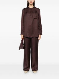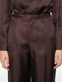 Fafila trousers Highlights - Chocolate brown - Silk - Twill weave - Tailored design - Concealed front button, hook and zip fastening - Pressed crease - Two side inset pockets - Rear welt pocket - Straight hem - Long length - Wide leg Made In France Composition Silk 100% SIZE & FIT Model measurements Height 5 ft 10 in(1.78 m) Bust/Chest 33.85 in(86 cm) Hips 36.61 in(93 cm) Waist 26.77 in(68 cm) FittingInformation Designed with a wide-leg cut, these trousers allow for a close fit at the waist and offer a loose and roomy fit over the leg Made from a lightweight non-stretch fabric