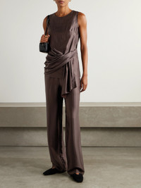 "Comforting simplicity" runs through Loulou de Saison's understated collections. This ‘Fonda' top is cut from panels of satin and has a beautifully draped detail at the front.