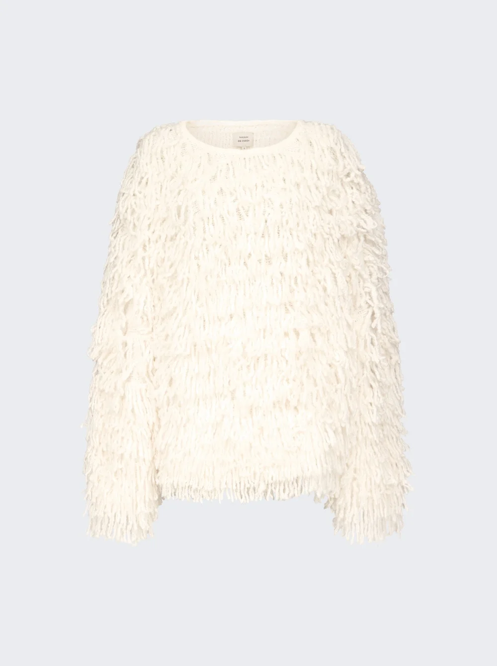 Details - Sweater composed of alpaca wool fringes - Round neckline, ample fit - Material: 74% Wool, 10% Alpaca, 15% Polyamide, 1% Elastane Size Information: Vendor Color Code: Brand Style: GABIN Designer/Brand: LOULOU DE SAISON