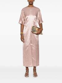 gathered-detail midi dress Highlights - Rose pink - Concealed rear hook and zip fastening - Front slit - Rear slit - Crew neck Imported Composition Linen/Flax 70%, Silk 30% SIZE & FIT Model measurements Height 5 ft 10 in(1.77 m) Bust/Chest 29.92 in(76 cm) Hips 34.25 in(87 cm) Waist 23.62 in(60 cm) FittingInformation Designed for a slim fit that sits just away from the body offering a close yet comfortable fit The vented hem offers movement at the rear Made from a midweight non-stretch fabric