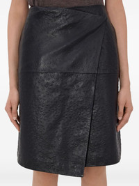 Gora ostrich-effect wrap midi skirt Highlights - Black - Leather - Ostrich effect - Wrap construction - Asymmetrical front - Layered look Imported Composition Leather 100% Washing instructions Read Manufacturer Guidelines