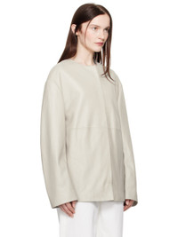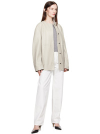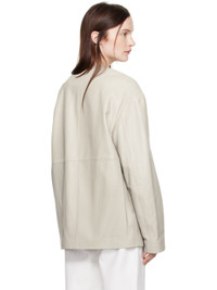 Buffed lambskin jacket. · Crewneck · Concealed button closure · Seam pockets · Partial plain-woven lining · Partial satin lining Supplier color: Grey Body: 100% lambskin. Lining 1: 100% cotton. Lining 2: 100% viscose. Made in Turkey 251473F064001