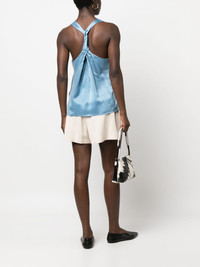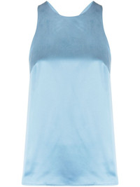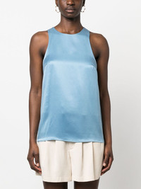 halterneck silk tank top Highlights - Sky blue - Silk - Satin finish - Halterneck - Racerback - Sleeveless - Straight hem Imported Composition Silk 100% SIZE & FIT Model measurements Height 5 ft 10 in(1.77 m) Bust/Chest 32.28 in(82 cm) Hips 35.03 in(89 cm) Waist 25.19 in(64 cm) FittingInformation Designed for a slim fit that sits just away from the body offering a close yet comfortable fit Made from a midweight non-stretch fabric This piece fits true to size – take your usual size