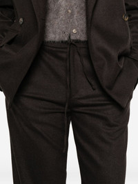 Harlem pants Highlights - Brown - Drawstring fastening - Button closure - Front pleats - Side seam pockets - Rear welt pocket Imported Composition Virgin Wool 90%, Cashmere 8%, Elastane 2% SIZE & FIT Model measurements Height 5 ft 11 in(1.8 m) Bust/Chest 31.49 in(80 cm) Hips 36.61 in(93 cm) Waist 24.4 in(62 cm) Washing instructions Read Manufacturer Guidelines