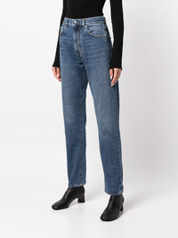 high-rise straight-leg jeans Highlights - Washed blue - Organic cotton - Washed - Belt loops - Front button and zip fastening - Classic five pockets - High-waisted - Straight leg Made in Italy Composition Organic Cotton 100% SIZE & FIT Model measurements Height 5 ft 10 in(1.77 m) Bust/Chest 33.85 in(86 cm) Hips 35.03 in(89 cm) Waist 24.01 in(61 cm) Measurement FRONT RISE 12.2 in(31 cm) HIPS 37 in(94 cm) WAIST 26.77 in(68 cm) FittingInformation This piece fits true to size. We recommend you get your regular size Cut for a slim fit Made with a mid-weight fabric