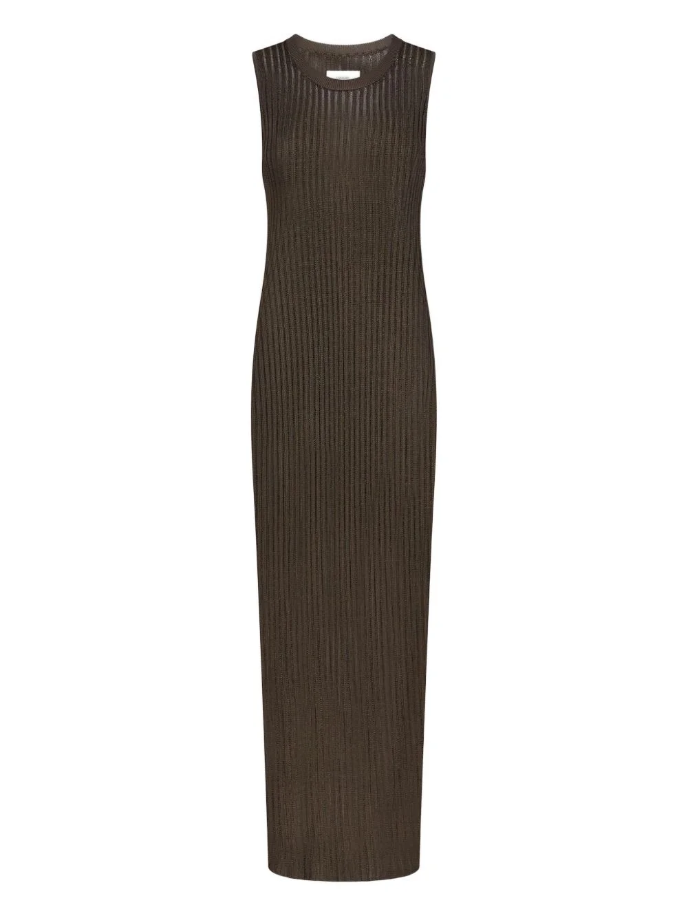 Icaria ribbed semi-sheer maxi dress Highlights - Brown - Ribbed knit - Semi-sheer - Crew neck - Sleeveless Imported Composition Fabric 100% Washing instructions Read Manufacturer Guidelines