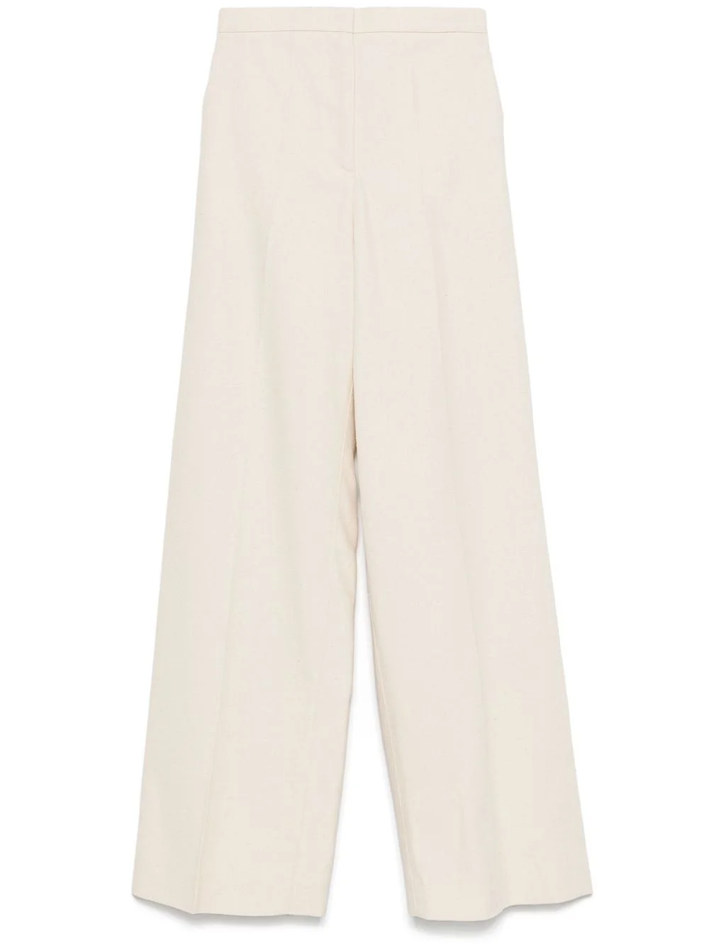 Zora trousers Highlights - Light beige - Concealed front button, hook and zip fastening - Rear elasticated waistband - Two side slash pockets - Rear welt pocket Imported Composition Cotton 55%, Viscose 26%, Linen/Flax 12%, Silk 7% SIZE & FIT Model measurements Height 5 ft 10 in(1.77 m) Bust/Chest 31.88 in(81 cm) Hips 36.22 in(92 cm) Waist 24.01 in(61 cm) FittingInformation Designed with a wide-leg cut, these trousers allow for a close fit at the waist and offer a loose and roomy fit over the leg The partially elasticated waistband offers increased movement and comfort at the waist Made from a midweight non-stretch fabric