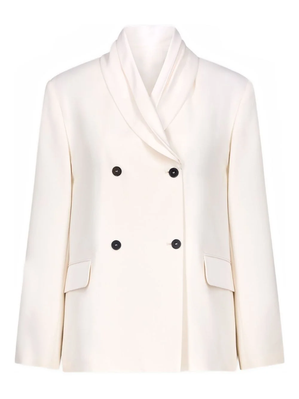 Jiha double-breasted shawl collar jacket Highlights - Beige - Double-breasted buttoning - Shawl collar - Flap pockets - Shiny finish - Straight cut Imported Composition Silk 50%, Wool 50% Washing instructions Read Manufacturer Guidelines