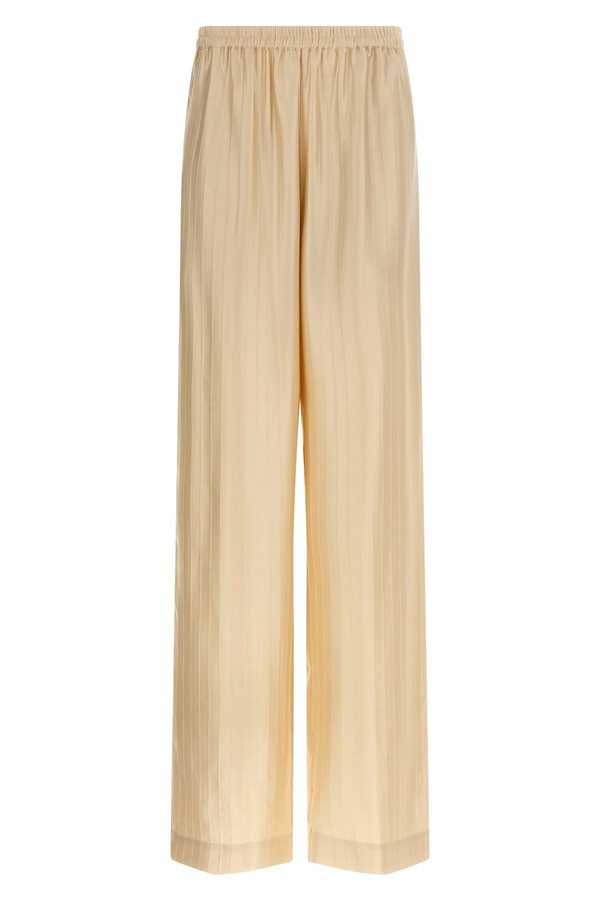 cod. KADALAECRU 'Kadala' pants in silk and viscose blend with monochromatic stripes, wide and straight leg, medium waist, elastic waistband, pockets. Color: Beige Size & Fit: Loose fit Composition: 54% viscose, 46% silk Made in: China