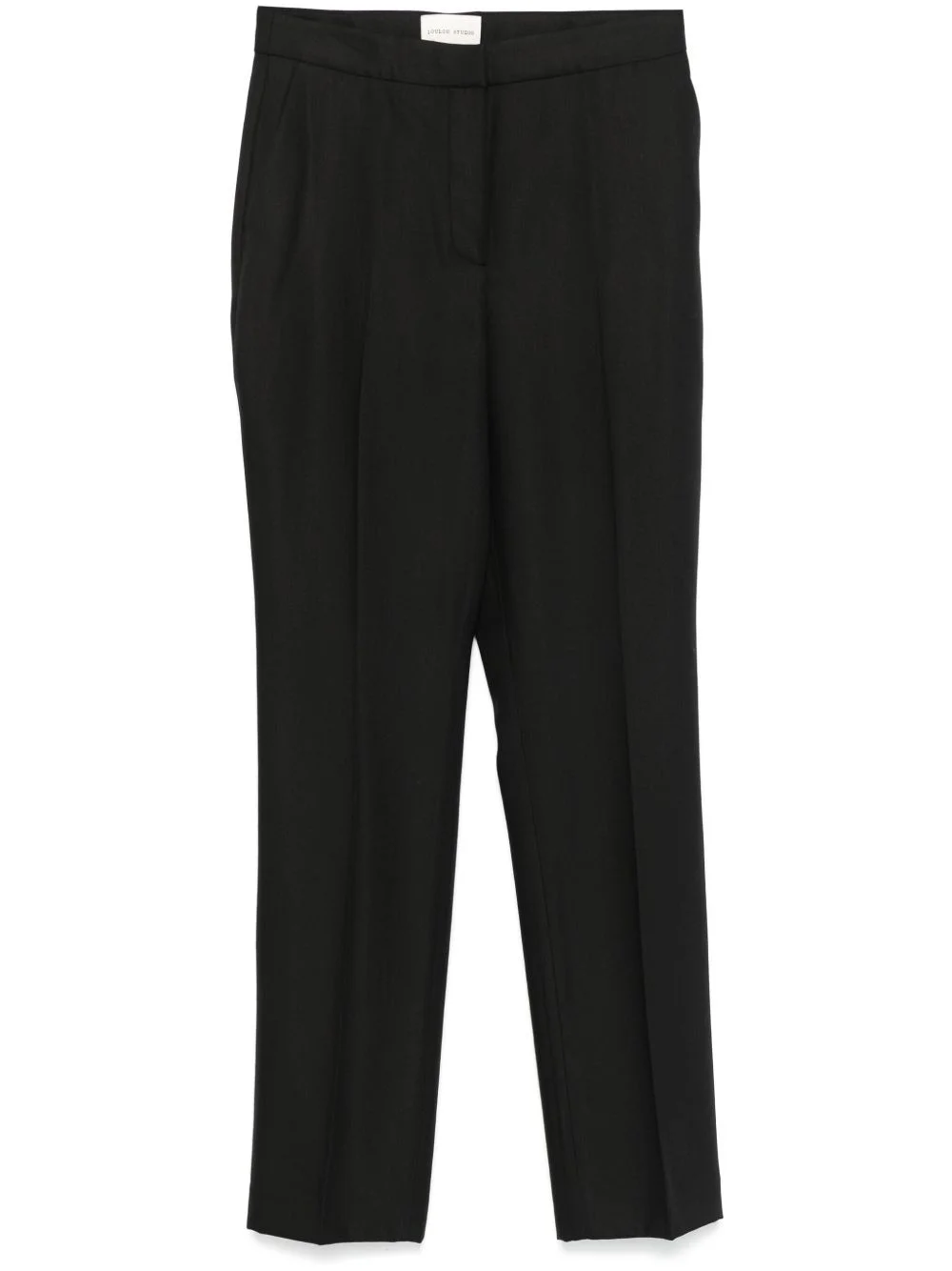 Kallisto trousers Highlights - Black - Twill weave - Concealed front button, hook and zip fastening - Belt loops - Pressed crease - Two diagonal pockets to the sides - Rear welt pocket - Straight leg Imported Composition Outer: Viscose 50%, Wool 35%, Mohair 15% Lining: Viscose 100% SIZE & FIT Model measurements Height 5 ft 10 in(1.78 m) Bust/Chest 31.49 in(80 cm) Hips 37 in(94 cm) Waist 23.62 in(60 cm) FittingInformation Designed for a straight-leg fit, these trousers allow for a close fit at the waist and an unrestricted, comfortable fit over the leg Made from a midweight non-stretch fabric, this piece offers minimal elasticity when worn Washing instructions Hand Wash