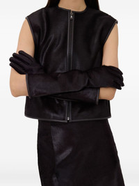leather gloves Highlights - Brown - Leather - Elbow length - Leather trim - Five-finger design Imported Composition Calf Hair 50%, Nappa Leather 50% Washing instructions Read Manufacturer Guidelines