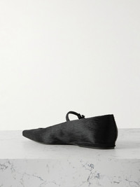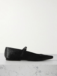 Loulou de Saison's 'Leone' flats are made from tactile calf hair that adds unexpected texture to the otherwise understated design. They have sharply pointed toes and adjustable Mary Jane straps that ensure a secure fit. The slight heel offers subtle lift. Size & Fit - Fits true to size, take your normal size - Italian sizing Details & Care - Slight heel - Black calf hair - Buckle-fastening strap