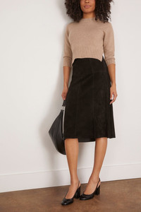 The Loulou de Saison Mora Cropped Sweater will be a staple in your fall and winter wardrobe. This cashmere sweater features a shrunken silhouette and cropped length. Wear yours with trousers and boots. FIT DESCRIPTION MODEL MEASUREMENTS - Fits true to size, take your normal size - Cashmere sweater - Cropped length - Crew neckline - Ribbed trim - Side slits - 100% Cashmere - Celeste is wearing a size XS - Bust: 35" - Waist: 25.5" - Hips: 34" - Height: 5’10”